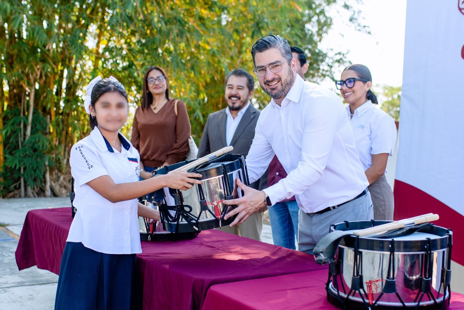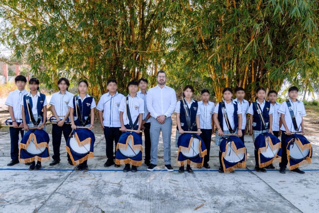 Con la donación de 7 cornetas y 6 tambores, se refuerza la banda de guerra como un impulso a la disciplina, los valores y el trabajo en equipo de las y los estudiantes.