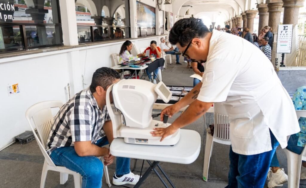 Entre los servicios de salud, se practicaron exámenes de la vista gratuitos y se ofrecieron anteojos graduados a bajo costo, con la colaboración de Grupo Óptico del Totonacapan.