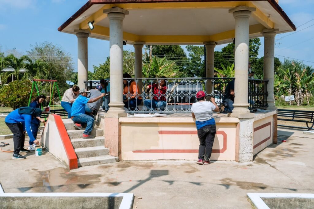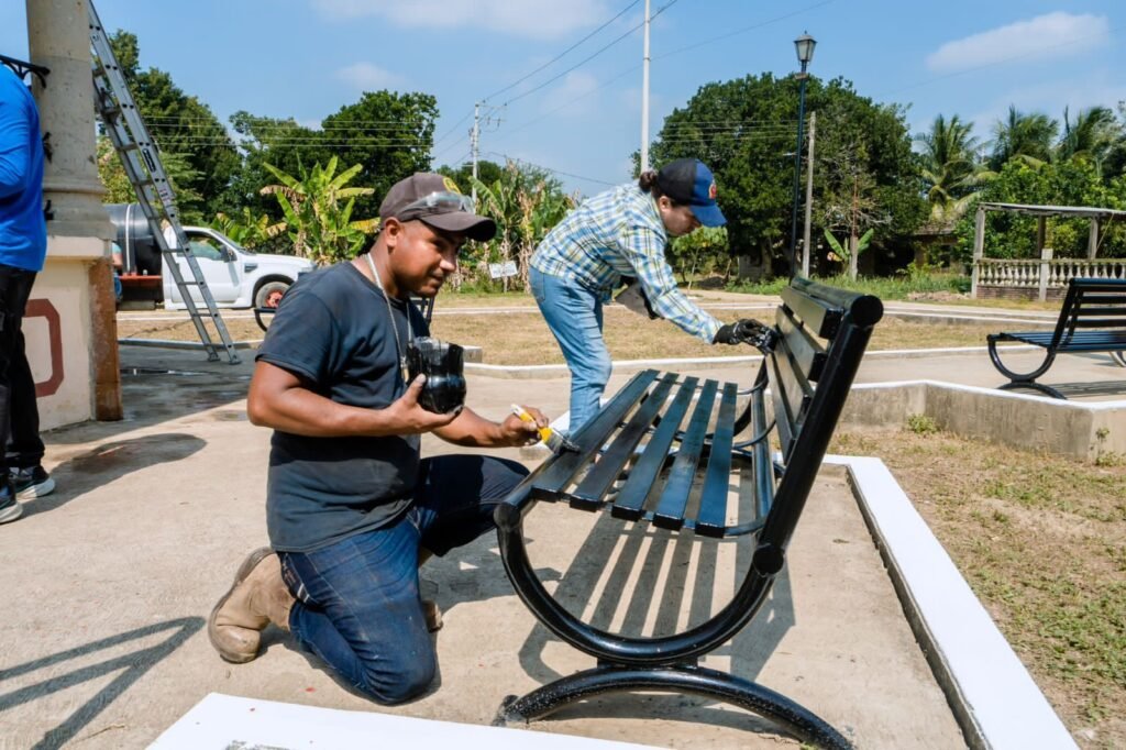 Tuxpan, Veracruz; 21 de febrero de 2026.- Este sábado, el alcalde Daniel Cortina Martínez, acompañado por personal del Ayuntamiento, acudió a la comunidad de Chomotla para realizar una jornada de trabajo enfocada en la rehabilitación del parque de la localidad.